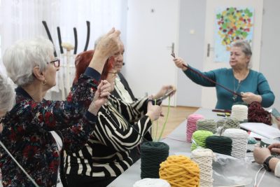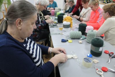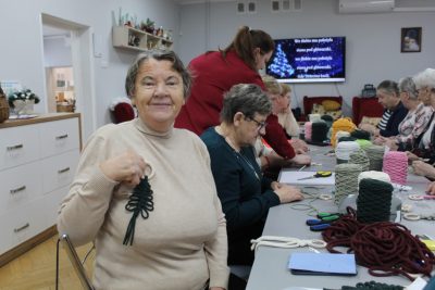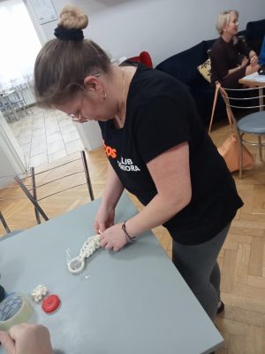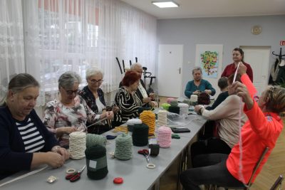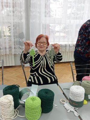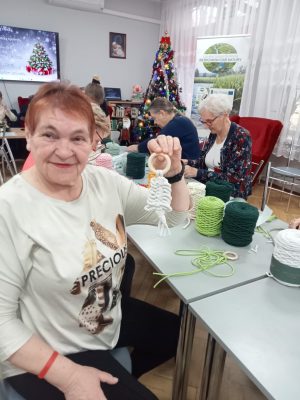 Podczas spotkania uczestnicy mieli okazję samodzielnie wykonać dekoracyjne choinki ze sznurka. Warsztaty przebiegały w miłej, spokojnej atmosferze, sprzyjającej rozmowom, integracji i wymianie doświadczeń. Spotkanie było nie tylko okazją do nauki nowej umiejętności, ale również do aktywnego spędzenia czasu i budowania relacji w lokalnej społeczności.