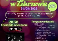 Przed nami wyjątkowy dzień pełen atrakcji dla całych rodzin! Pożegnanie Lata w Zakrzewie! 24 sierpnia 2025 (niedziela) Plac przy świetlicy wiejskiej w Zakrzewie 12:00 – 23:00 WSTĘP WOLNY! W programie: Animacje i konkursy z nagrodami dla dzieci i dorosłych Występy artystyczne Stoisko kulinarne KGW „Paka zza Krzaka” Strefa dmuchańców Ognisko Piana Party Gwiazda wieczoru –… Dowiedz się więcej »