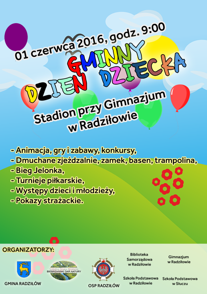 W dniu 1 czerwca br. odbędzie się Gminny Dzień Dziecka w Radziłowie, na który jako współorganizatorzy bardzo serdecznie zapraszamy.
