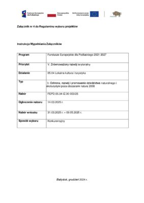 ← Komunikat dotyczący naboru nr 3/2025/EFRR – Ochrona, rozwój i promowanie dziedzictwa naturalnego i ekoturystyki poza obszarami Natura 2000